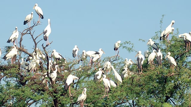 · Painted stork: These striking birds with their vibrant plumage and long bills are commonly seen nesting in the park’s trees.