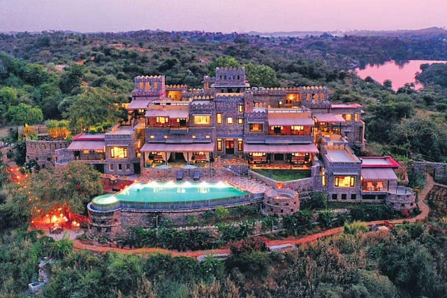 The sky has turned a deep shade of crimson and purple with the last rays of daylight even as the white-canopied boat glides through placid waters. Its gentle pace matches the restful mood after a rather long day. Suddenly, the shrill cries of peacocks are heard, and as if on cue, the naturalist gets a call. The boat rushes to the far-side bank, and given the sense of urgency in the air, one is beckoned off the lounge chairs. For, on a rocky outcrop in a clearing between the dhok trees, this jungle’s most famed resident has been spotted—the leopard.