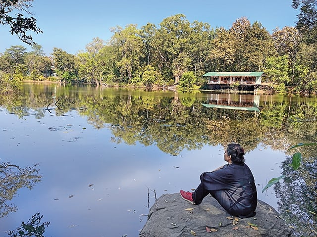 The accommodation inside the Park is Jal Mahal, an old Forest Rest House, now restored and run by Jungle Camps India as part of the Rukhad Jungle Camp. It retains an old-world essence: muted colours, a charming ‘dabba’ service, a terrific sustainability programme that even includes toothpaste tablets to do away with single use plastics, and simple rooms that open into sit-outs on the small Doodhia lake. The jungle on the shore across, harbours wildlife that can be spotted better if you climb the treehouse standing right outside. Constructed carefully without destroying the gigantic tendu trees that shoot through the floor and pierce the roof, this is the best perch to watch sambar families lapping up water on the other side, wild boar herds trotting on dried leaves, and an occasional big cat, if you are lucky. For a better look at the cats though, go deep into the Rukhad zone and you have a good chance of seeing either one of its resident pair, Bajirao and Mastani. “Rukhad is like a treasure hunt full of hidden jewels. It’s more rugged, more dense than open,” says Pradeep Patil, the sought-after head naturalist here who has a 25-year-long association with the forests of Central India.