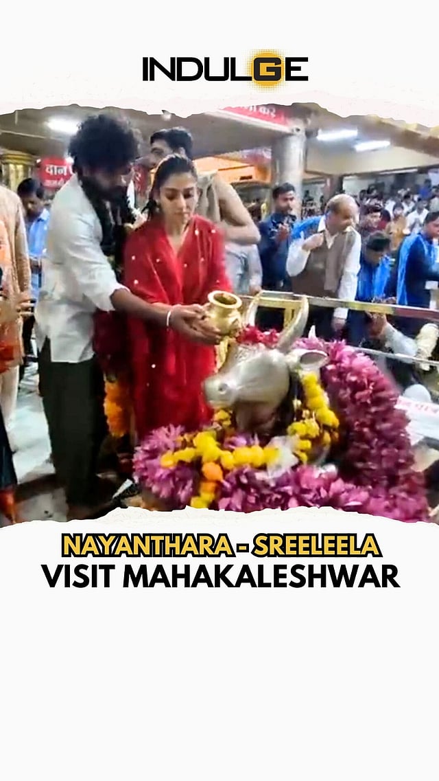 Actresses Nayanthara and Sreeleela visited the sacred Mahakaleshwar Temple in Ujjain, Madhya Pradesh, one of the twelve Jyotirlingas dedicated to Lord Shiva. The temple is renowned for its spiritual significance and ancient architecture.
