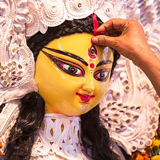 She is worshipped as a fierce warrior goddess who destroys evil and restores dharma. Radiating courage and righteousness, she rides a lion and carries a sword in her hand, symbolizing divine justice and protection.