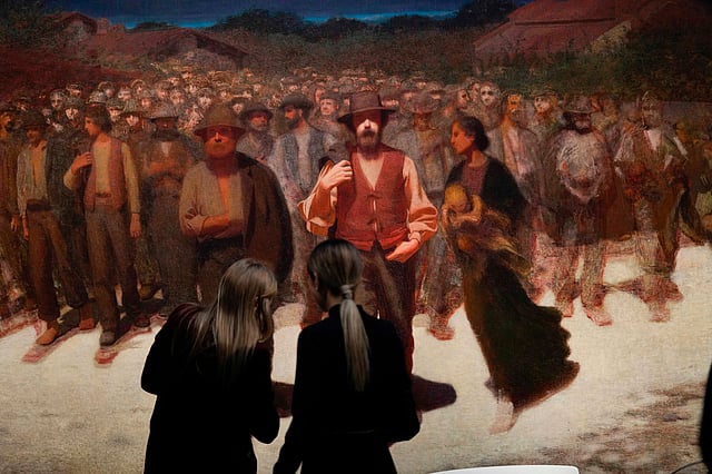 Visitors watch painting at the Pinacoteca Museum of Brera