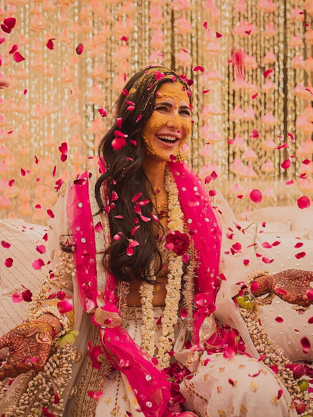 Katrina Kaif looks stunning in her bridal dress. According to sources, it costs around INR 17 Lakhs
