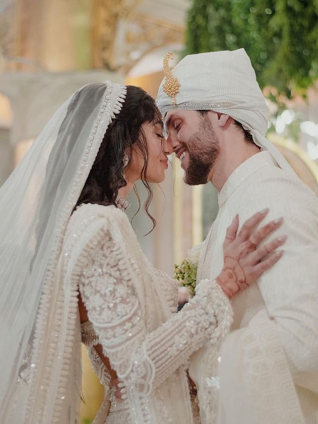 Alanna’s stunning white wedding lehenga was designed by Manish Malhotra