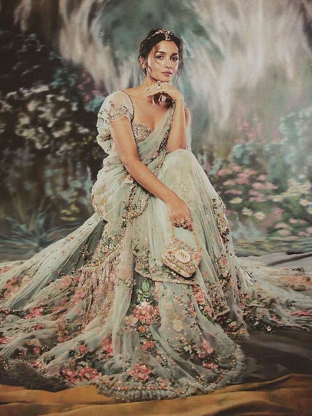 The birthday girl is embracing Garden of Time like no other. This Sabyasachi piece incorporates hand embroidery, precious stones, beadwork and fringes, with the colour palette pays homage to nature's beauty.