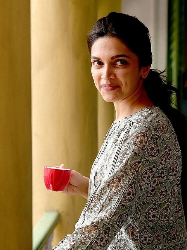 Yet another lesson in how a contrasting stole can spruce up a simple outfit. The Kantha stitch stole on the pink kurti makes Deepika looks as serene as morning sunshine.