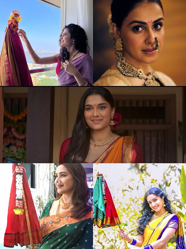 Genelia D’Souza Deshmukh embraces her Marathi roots with an intricately draped saree, complete with a heavy traditional jewellery set. Her sleek hairstyle and confident stance make this look effortlessly graceful, setting the perfect example for anyone looking to stand out while staying true to cultural aesthetics.