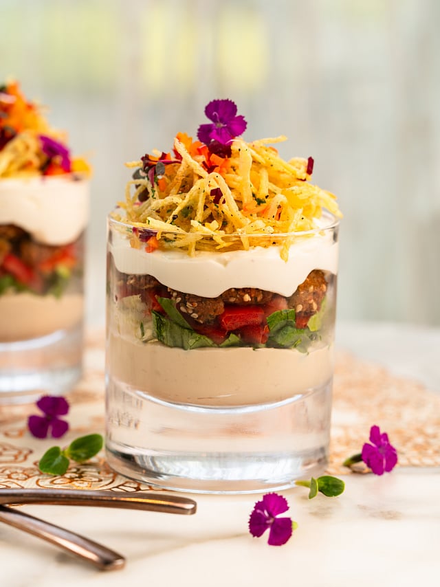Layers of crisp baklava, velvety ice cream, and a drizzle of honey balances the texture in the Baklava Sundae dessert