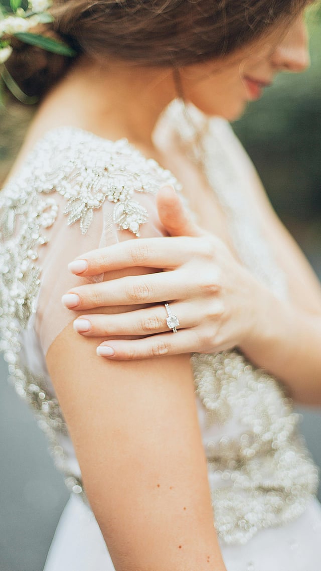 The pavé setting covers the band with tiny diamonds set closely together, giving the ring a glittering surface. It enhances the overall sparkle without overshadowing the main stone, making it both romantic and eye-catching.