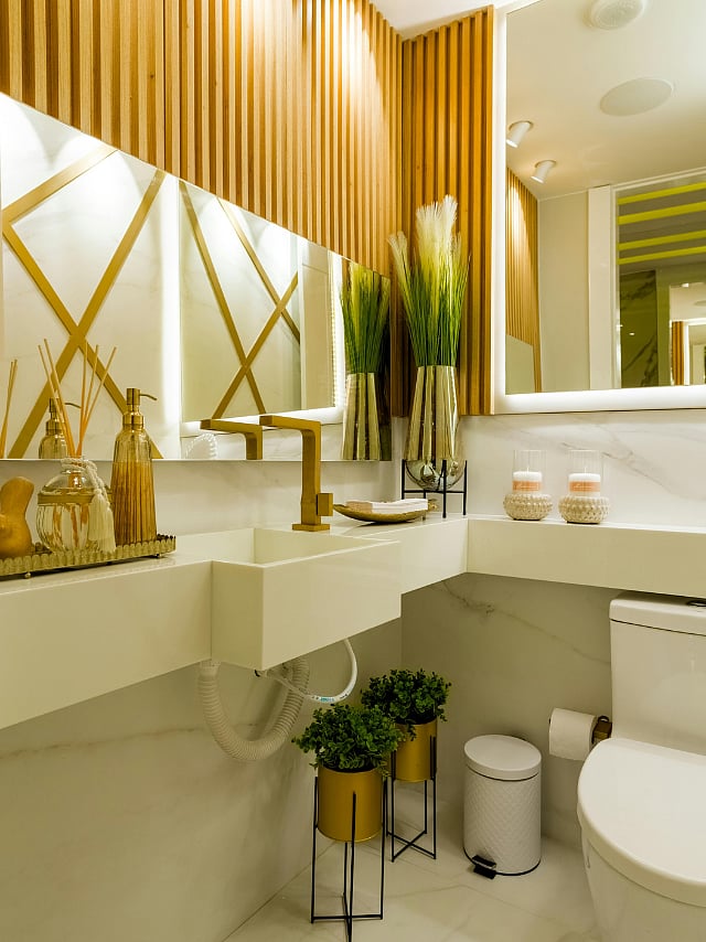 Orchids add a colourful twist to your pastel coloured or mono-coloured bathrooms. They survive well in less light and need watering only if you feel the soil is dry.