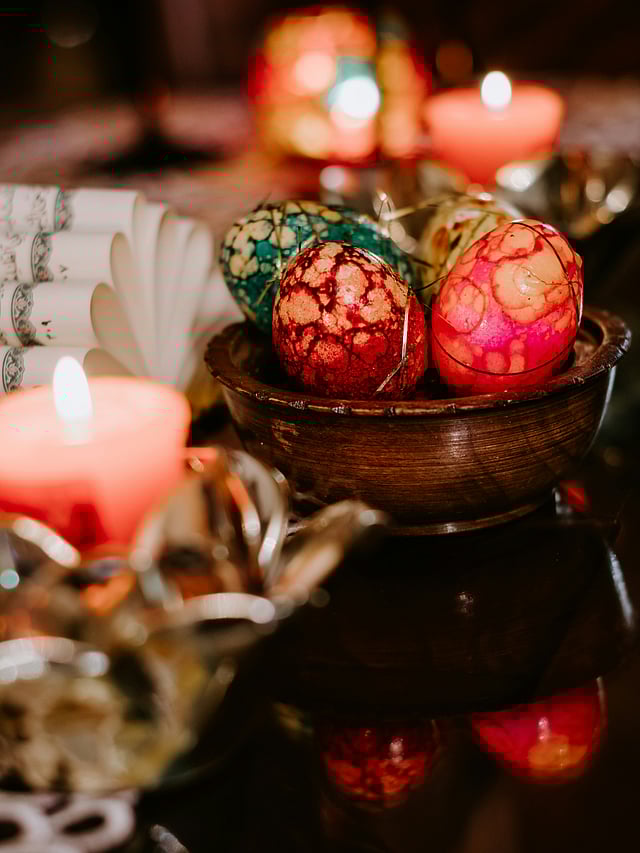 A Nowruz tradition is the haft-sin, a table set with seven symbolic items starting with the letter ‘S’ in Persian—such as sabzeh (sprouted greens for rebirth) and serkeh (vinegar for patience). Painted eggs, sweets, and dried fruits are also key elements.