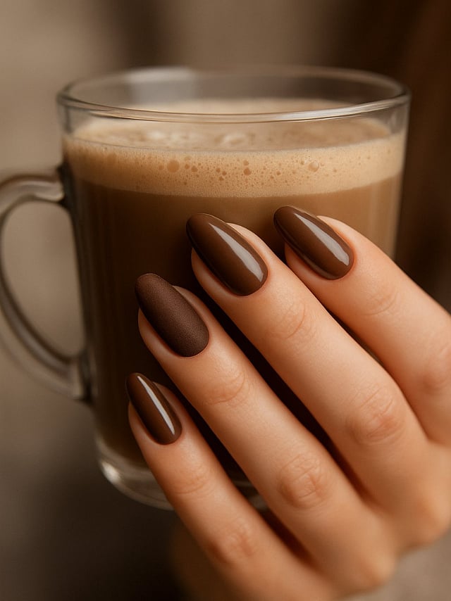 Mocha nails work well with bright colours and matt or nude ones, making it timless in appearance.