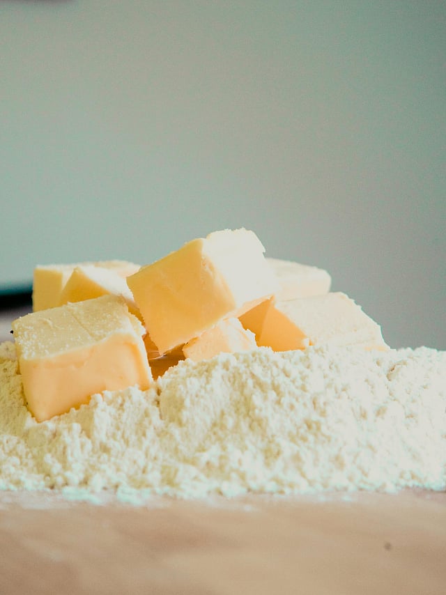 Place the butter slab/ cubes on countertop, lay in parchment paper and roll to soften it.