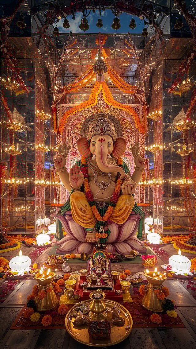 Karanji is a beloved Maharashtrian snack, also known as gujiya in other regions. It is also a dumpling, but different from patholi. It is a crispy fried dumpling with a sweet filling, which Ganesha is said to enjoy. The filling consists of grated coconut, jaggery or sugar, and nuts like cashews and almonds.