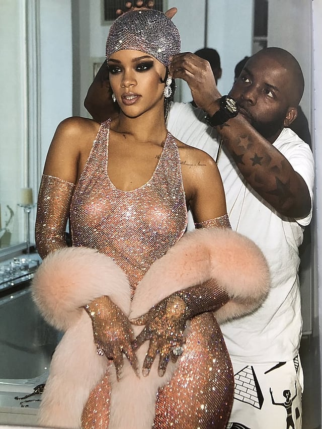 At the 2018 Diamond Ball, Rihanna wore a stunning custom couture look by Alexis Mabille: a white lace bodysuit, with an enormous skirt and bow. She accessorised this outfit with amazing diamond jewellery which complemented the overall look, combining sophistication with daring glamour.