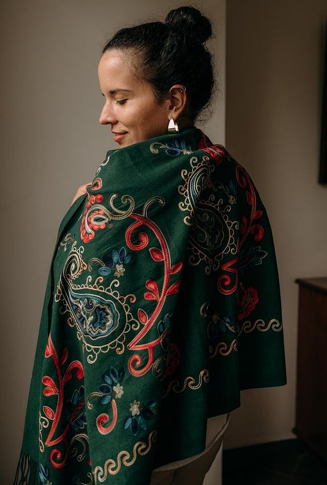 Another festival favourite, aari embroidery follows chain stitch pattern to create floral patterns. Known for its graceful look, these Kashmiri shawls are slightly more affordable.