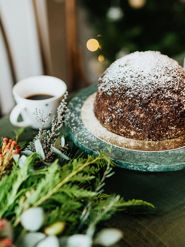 British Christmas Pudding: The traditional dessert, one cannot forget! It is steamed with dry fruits, breadcrumbs, sugar, spices, and at times alcohol, for hours to make.