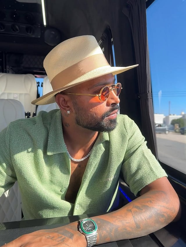 A blend of sportiness and luxury defines this Audemars Piguet Offshore model, which includes a chronograph feature alongside an impressive case design and unparalleled Swiss craftsmanship. Its bold aesthetic aligns perfectly with Pandya's dynamic character.
