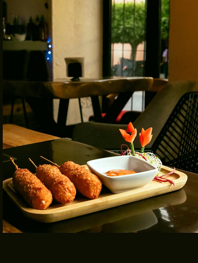 Located in Laxmi Nagar, East Delhi, this place is a Gen Z–favourite Korean café. It is known for its cheese-loaded corn dogs, street-style snacks and budget friendly options.