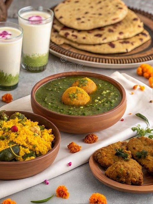 Velvety and slightly tangy sauce made from yogurt with a base of ground chickpea flour. This hearty dish represents the two different types of textures often found in traditional Baisakhi foods, i.e., creamy and crunchy.