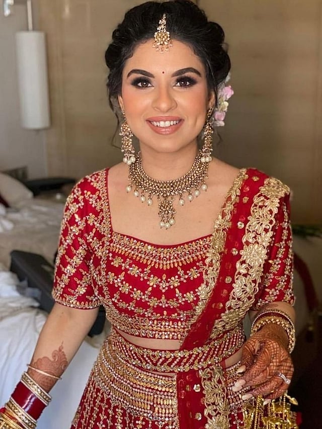Brides in 2026 often use different makeup styles to create an ideal, flawless look. For example, a bride with an oily T-zone may apply matte foundation. Then using a dewy highlighter on the cheekbones she can achieve a look that is both matte and dewy.