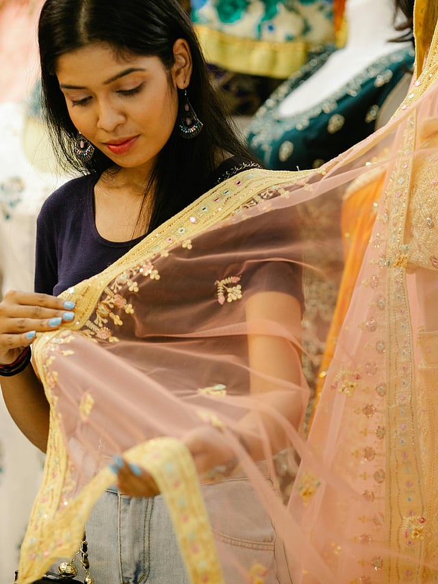 Touch the fabric: Always touch the saree before buying. A Benarasi silk will be smooth, slightly textured, has weight and drapes elegantly.