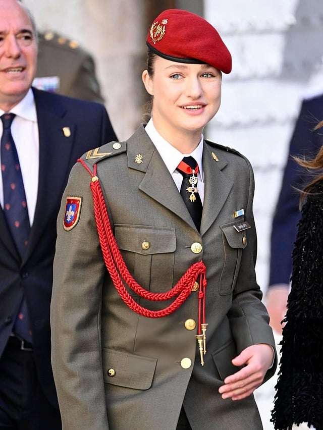 The heir to the Spanish throne is Princess Leonor, Princess of Asturias. Even though the law is that males take precedence in regard to succession. But as the eldest child of the King, Leonor is next in line to take the throne. She also performs public duties and participates in military activities.