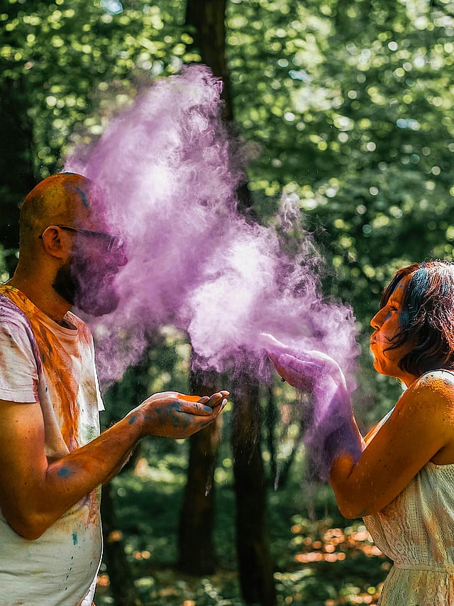 Replace the fluorescent colours with pastel colours, like lavender or mint green. Your partner can blow the fine powder into the air at the same time that you blow it into the air, creating a mist effect.