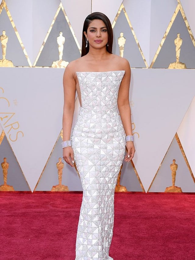 Priyanka Chopra made a lot of appearances on the Oscar red carpet. In 2026 she made a debut wearing a lace dress by Zuhair Murad.