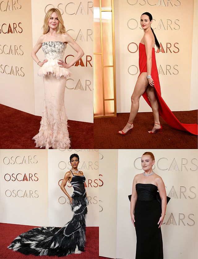 While others brought the off-shoulder silhouette to life with sheer glamour, from Anne Hathaway in a striking black Valentino to Demi Moore in a custom Gucci gown, each look a work of art that revived the timeless style.