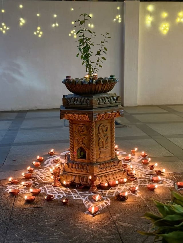 According to Vastu principles, a tulsi plant in home should never be positioned directly on the floor of a home. It should always be on an elevated potted pedestal or platform in relation to the main foundation level of the home.