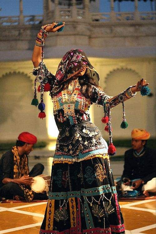 The people of Rajasthan perform their traditional dance form by dancing to the rhythm of the music while adorned in heavy jewellery and stunning costumes. Ghoomar uses intriguing circular hand motions in addition to his vocalisations.