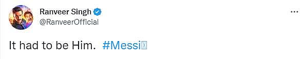 Actor Ranveer Singh said, “It had to be Him. #Messi.”