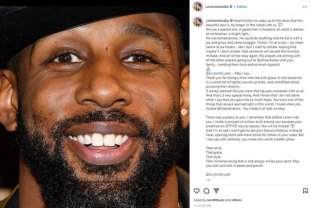 “He was a special one. A good man, a husband, an artist, a dancer, an entertainer, a bright light…He was extraordinary. He could do anything and he did it with a joy and grace and some swagger. Twitch, I’m at a loss… my heart seems to be frozen… like I don’t want to exhale, hoping that maybe if I don’t exhale, that someone will correct this horrible mistake. And all will be okay again,” Carrie Ann, a judge on Dancing with the Stars, posted on Instagram.