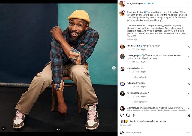 Other celebrities who shared tributes on social media in mourning included Questlove, Kerry Washington, and Carrie Ann Inaba. “I have no words man. May his family find resolution in this dark time. May we all find peace of mind in our everyday lives. Everyday is a winding road and you just may never know who is on the edge,” Questlove posted on Instagram.