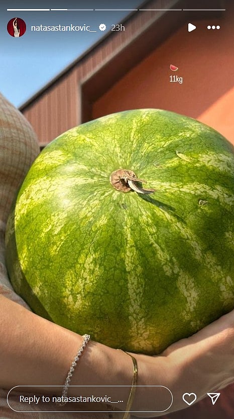 Agastya’s playful spirit also stole the show. A heartwarming video showed him retrieving his ball from the mud, a testament to his adventurous nature. Beyond the idyllic snippets, Natasa shared a photo holding a massive 11-kilo melon, hinting at a taste of home.