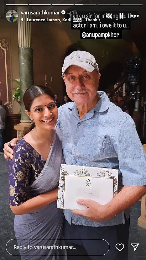 Varalaxmi didn’t stop there. She shared a heartfelt post with her ‘guru’ Anupam Kher. The caption read, “Where it all started.. with my guru @anupamkher sir.. @actorprepares,” followed by, “Thank u sir for making me the actor I am.. I owe it to u.. @anupamkher.”
