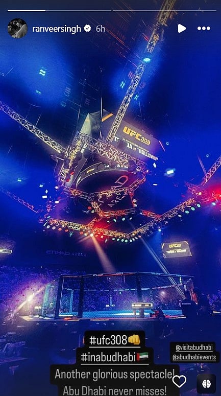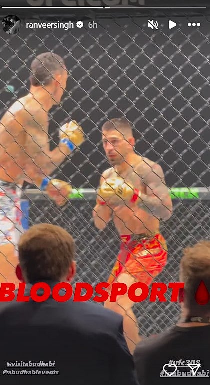 Ranveer also shared a glimpse of the event on his Instagram Stories, expressing his excitement and admiration for the fighters. He wrote, “Bloodsport,” showcasing the intensity of the fights. Aditya too, shared a post from the event, expressing his enthusiasm for the UFC experience.