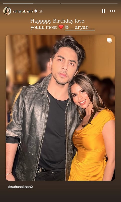 In her sweet note, she expressed her deep affection for him. Marking the special occasion, Suhana declared that she loves Aryan the most, giving a glimpse into their close sibling bond. Taking to her Instagram stories, Suhana shared an adorable picture of herself with Aryan.