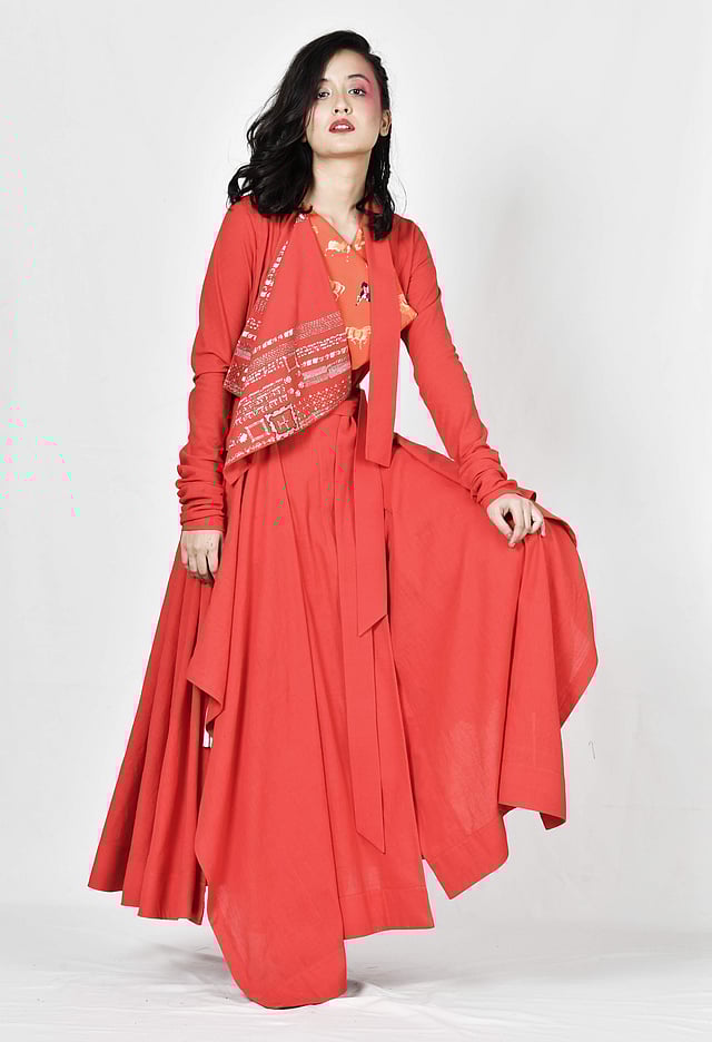 balloons and floral patterns — visuals that remind me of my journey,” says the New-Delhi based designer whose collection of bomber jackets, kimono robes, deconstructed kurtas and shift dresses are made by reactive printing on khadi, silk, organza and cotton cambrics. Rs 12,000 onwards.