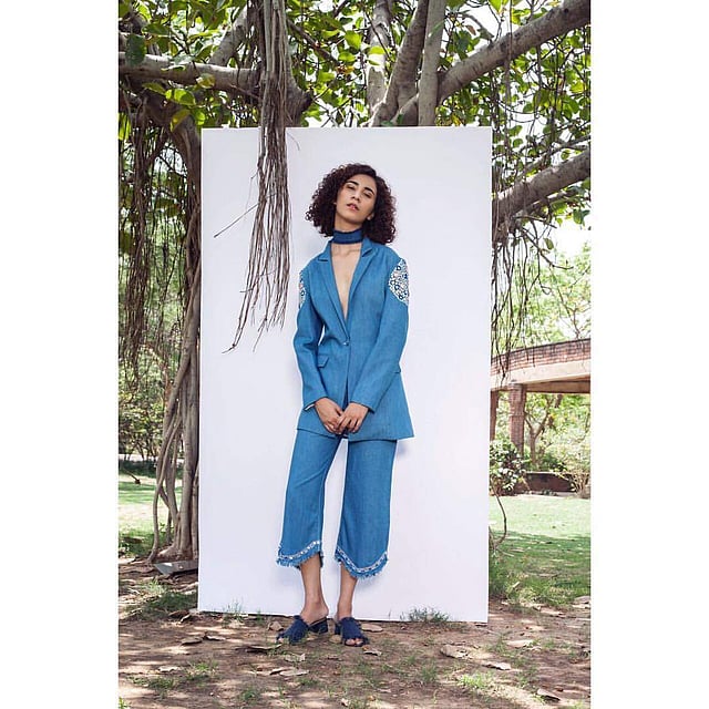 New Delhi-based contemporary ready-to-wear label Aruni takes its inspiration from the founder’s mixed heritage. “As an Indian who was brought up in Thailand, I always wanted to wear Indian clothing. But the traditional, heavily embroidered styles didn’t work for me,” begins Aruni Banditanukul, whose family runs a denim textile business. Deciding to merge her style sensibilities with the Indian aesthetic, Aruni first began by using pleats and drapes on denim to create dresses, jumpsuits and jackets, but soon progressed into designing denim lehengas, shararas and dhoti pants. Look out for her statement jacket with embroidery and mirrorwork and matching denim culottes — a look that was worn by actress Shilpa Shetty. Rs 7,000 onwards.