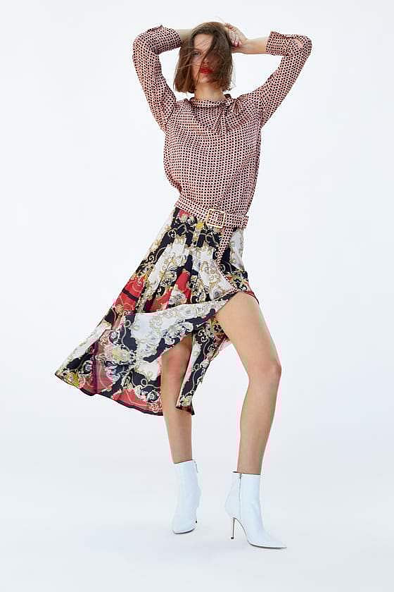 Pleated midi skirts, paired with shirts, crop tops and even sweatshirts are everywhere this season. Here are some of our top picks, that will help you get the look: