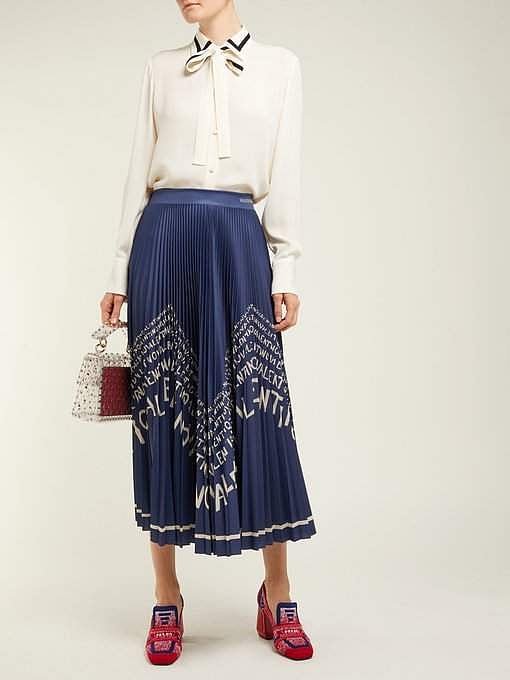 The classic midi skirt from Valentino takes on the logo trend of the season in a chevron pattern. With a strong 70s vibe, we’re sure this one moves gracefully as you walk. Rs.89,360 approximately