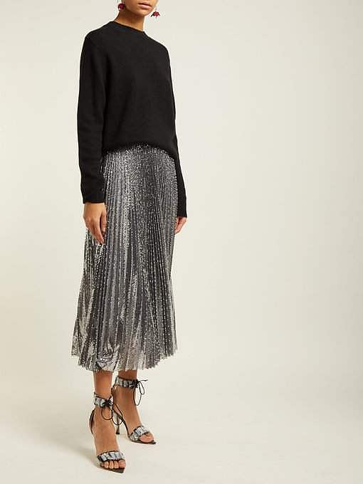 There’s nothing quite like sequins to add magic and glamour to an outfit and this skirt from MSGM does just that. We also dig the way the model has paired it with a simple black sweater. Rs.44,685 approximately