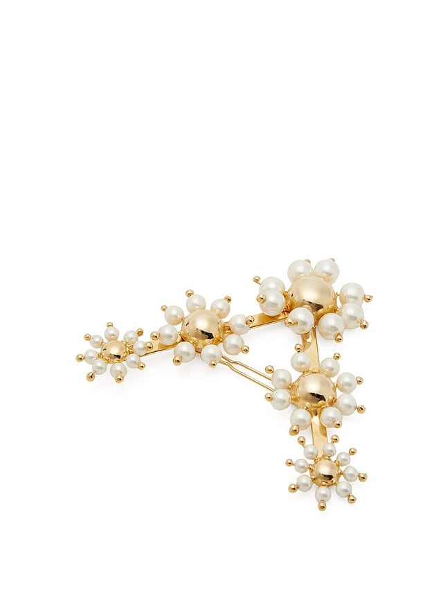 Give your hairdo a glamorous update with this faux pearl hair clip from Rosantica. The V-shaped clip is detailed with pearls that double up as petals set around golden spheres. Rs.15,000