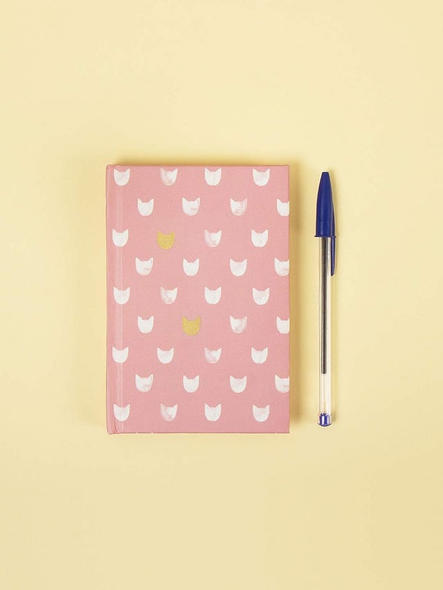 How adorable is this cat notebook from Wishing Chair?! The ruled notebook features a pale pink cover with prints of cats in contrasting white, and just two in gold foil to break the monotony. Rs.300