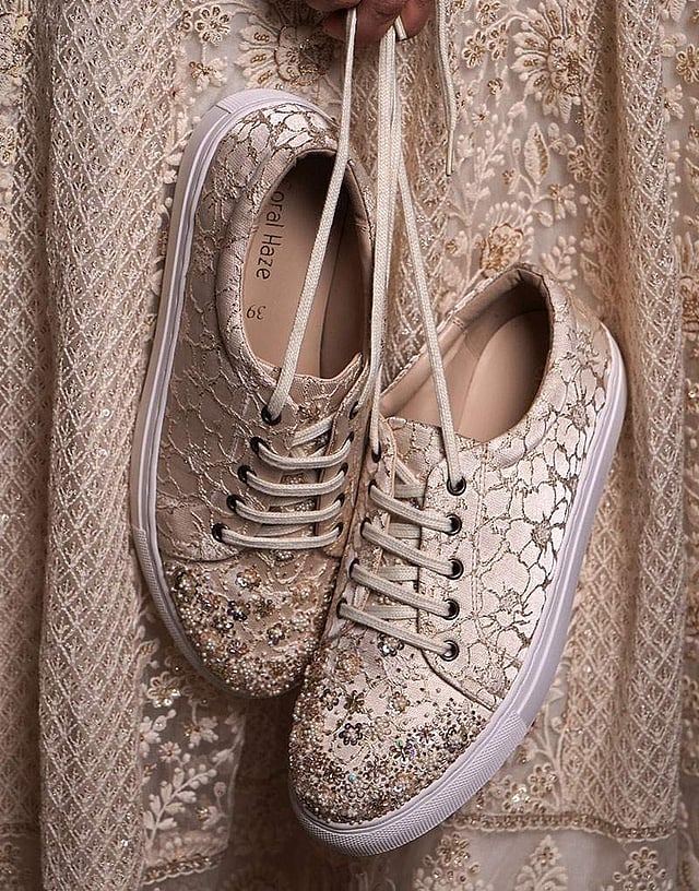 Delhi-based footwear label Coral Haze, founded by Vidushi Mallick and Manhar Oberoi, has debuted a range of bridal sneakers that go with a bride’s trousseau for the wedding day. Intricately designed, with a hint of surface embellishments — their collection of bridal sneakers is indeed quirky! Expect a hue of pop-coloured threadwork to match the colour of the ensemble or just jazz it up!