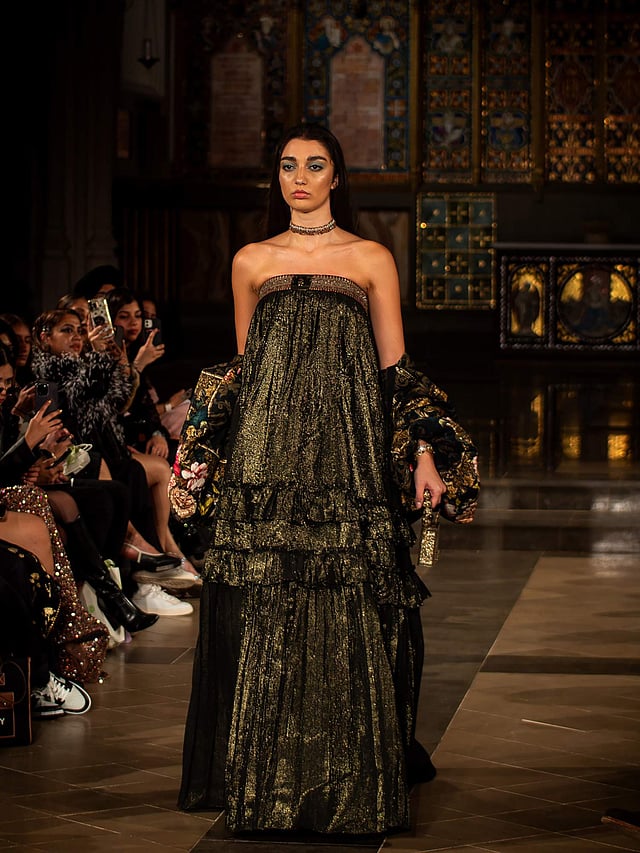 While his previous collection focused on nocturnal floral beauty, using nature-inspired colours and silhouettes, Damned Soul — An Eruption, in contrast explores contemporary freedom with dark soul symbolism, featuring sequin embroidery and metallic textures, signature baroque print, blending avant-garde design with mental serenity themes.