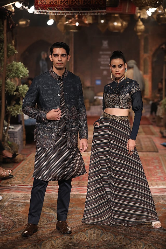 The edit traverses through three unique expressions -- Istanbul, inspired by a fusion based on intricately cut stencils of the Ottoman period, Isfahan, is where Persian carpets and miniature paintings rule albeit in a modern avatar, and Delhi, that heralds the intricacy of Mughal inlays. Fabrics range from custom woven silks to lush velvets with a glorious bank of silhouettes comprising lehengas, saris, evening jackets and outfits for women and sherwanis, Nehru jackets, bandhgala jackets and kurtas for men besides an assortment of stoles, shawls and other accessories for the season.