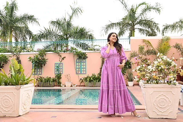 She drew inspiration from the natural beauty of summer landscapes — blooming gardens, azure skies, and golden sunsets. “Our goal was to create a line of maxi dresses that embody this spirit, offering fluid silhouettes that move gracefully and reflect the brightness of the season. Each piece is designed to make every sidewalk feel like a runway, encouraging women to embrace their inner radiance,” adds Pari. For the edit, she selected lightweight, breathable fabrics such as cotton and cotton mulmul — perfect for warm weather. The colour palette includes vibrant hues like coral, turquoise, sunflower yellow, and fuchsia, alongside softer tones like pastel pink, mint green, and lavender. These colours were chosen to evoke the joy and energy of summer, creating a visual feast that feels both refreshing and uplifting. Pari tells us, “Some unique design elements on the pieces include intricate embroidery, playful ruffles, and asymmetrical hemlines, which add a touch of whimsy and sophistication to each piece.”